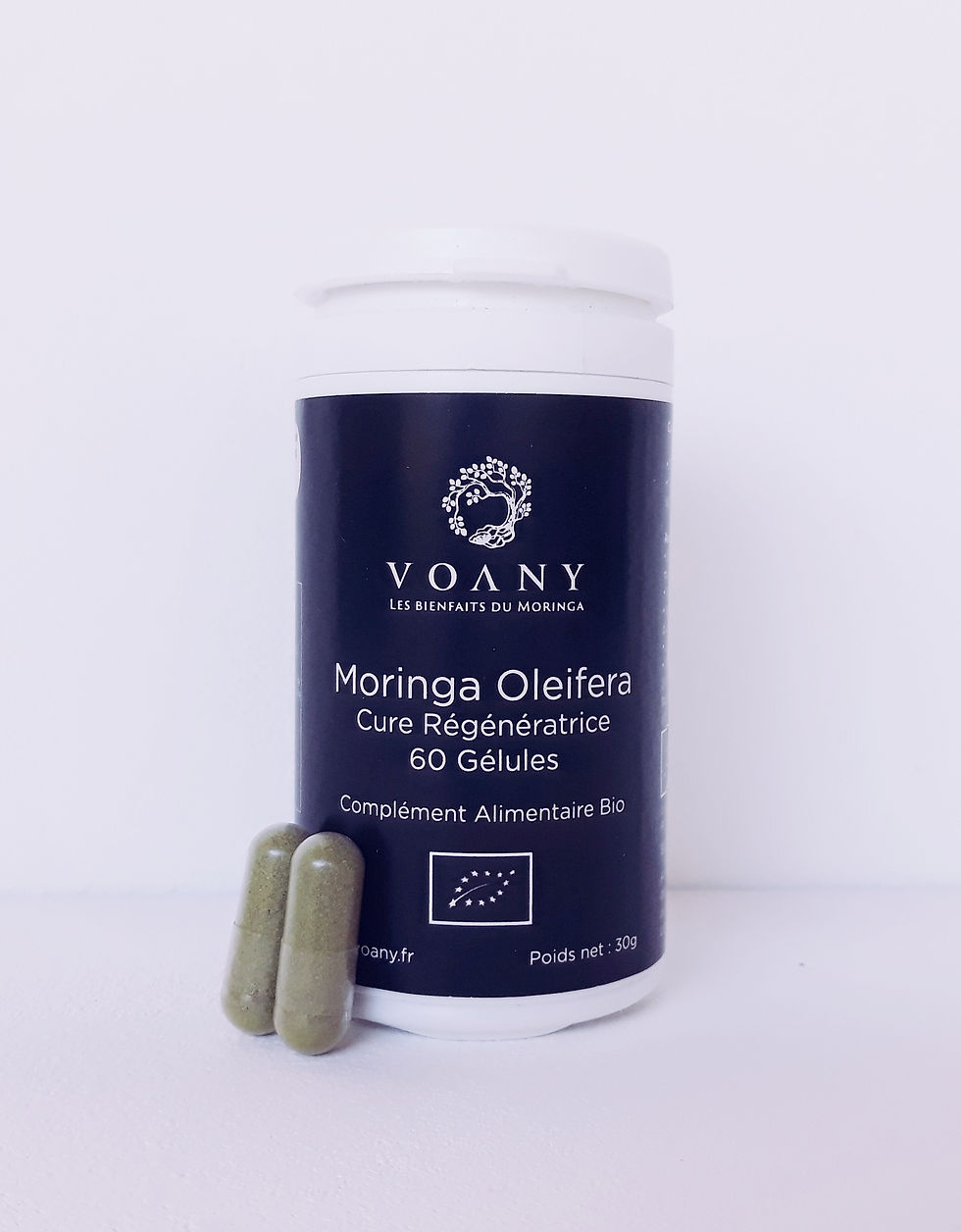 Les cures régénératrices ont pour objectif de mieux faire fonctionner notre corps. Nos gélules alimentaires naturelles sont composées à 100% de poudre de Moringa. Un carburant protéiné, rempli en acides aminés et gorgé d'antioxydants.